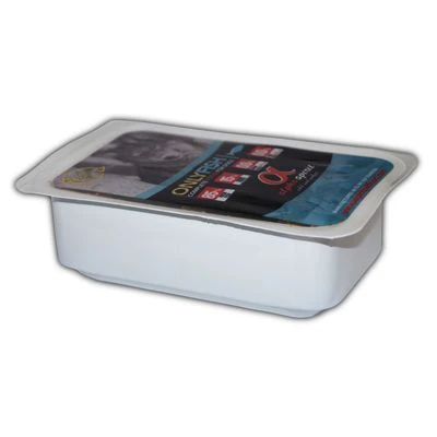 Alimento semihúmedo para perros adultos. Con pescado fresco en prácticas tarrinas para conservar la consistencia húmeda. Sin cereales.
