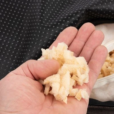 - Material de relleno en funda separada: accesible mediante cremallera, para ajustar de forma individual la cantidad de relleno