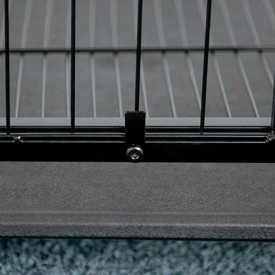 Jaula para perros de máximo 50 kg, para uso en interior, 4 ruedas giratorias, puerta frontal, techo abatible, bandeja inferior extraíble, rejilla de acero, de metal y plástico
