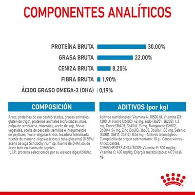 Royal Canin Giant Starter es adecuado para perros grandes de más de 45 kg. Gracias al Programa de nutrición desde el nacimiento, que fue desarrollado en cooperación con los productores, la necesidad de la perra y sus cachorros está cubierta óptimamente durante los primeros ciclos de vida: embarazo, nacimiento, destete, y la 1ª fase de crecimiento de los cachorros hasta el segundo mes. El Starter Complex contiene también nutrientes esenciales que contribuyen a la digestión de los jóvenes cachorros. Además, apoya y favorece la construcción de las defensas naturales.